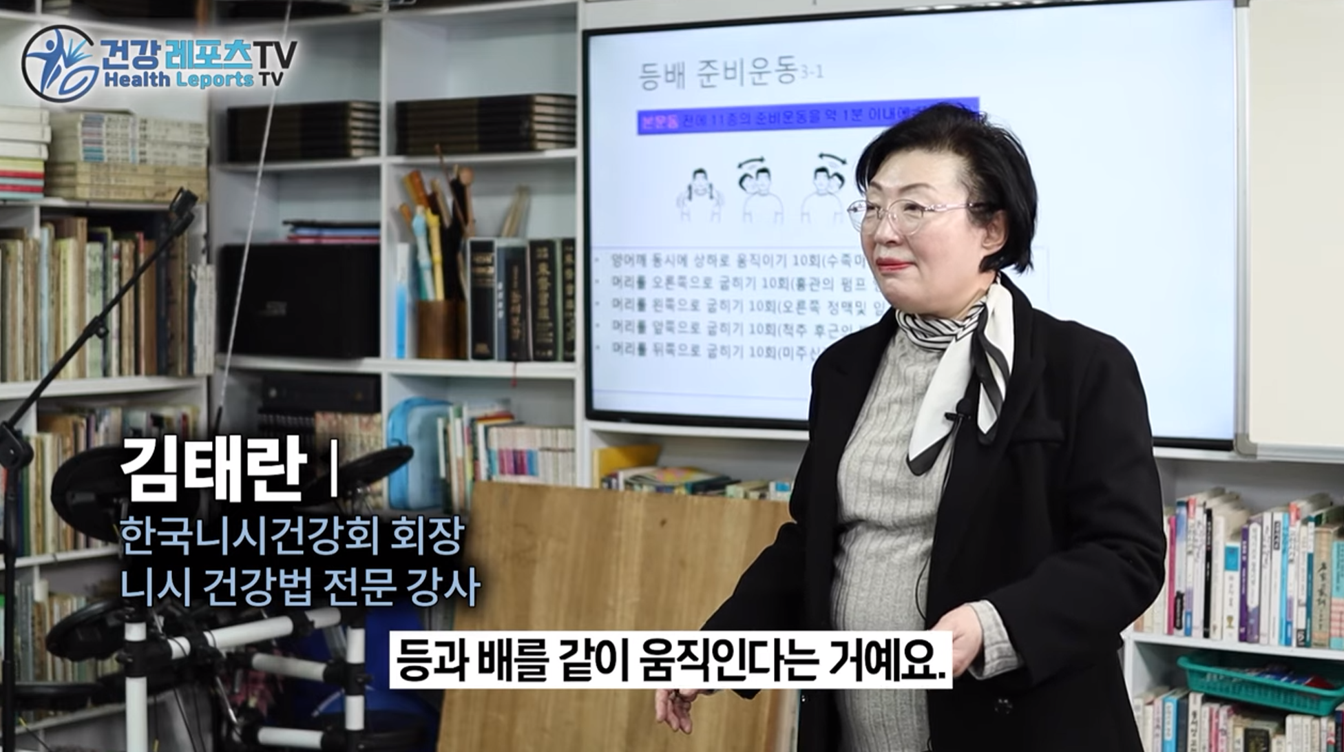 니시건강법 니시의학 6대 법칙 여섯 번째 등배운동 고혈압 스트레스 해소 머리가 맑아지는 효과