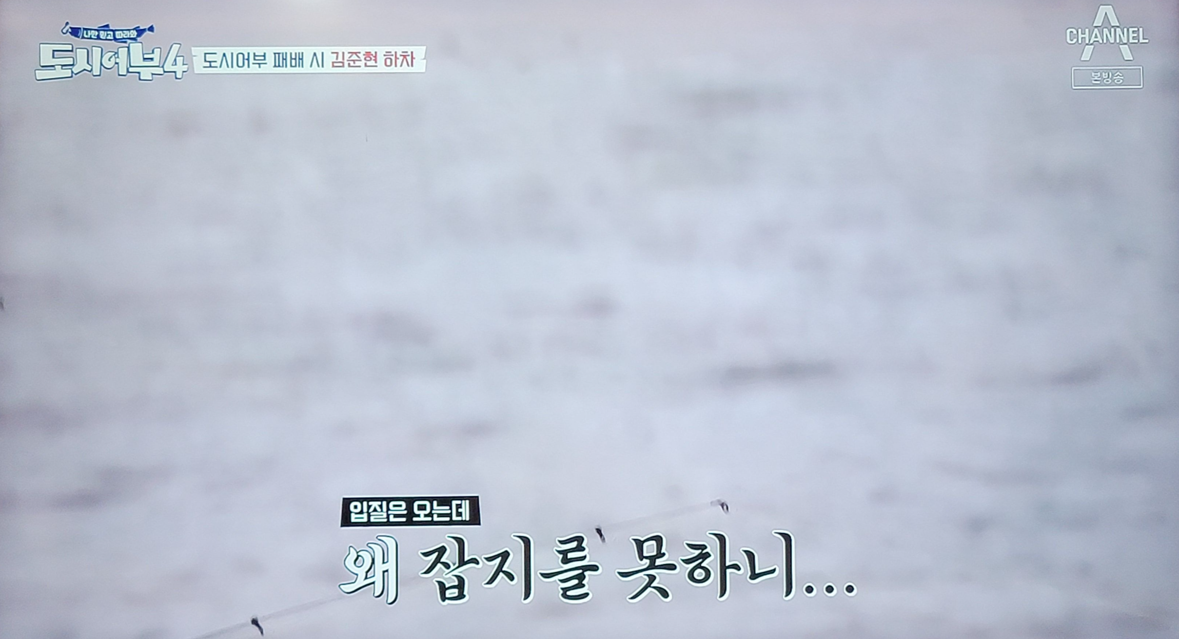 다른 때와 달리 도시 어부 시즌4 1회 첫회에서는 오랜만에 낚시를 해서 그런지 모두 조황이 좋지 않았다. "입질은 오는데 왜 잡지를 못하니"라는 자막에 잡지 못하는 이들의 심정을 느낄 수가 있다.