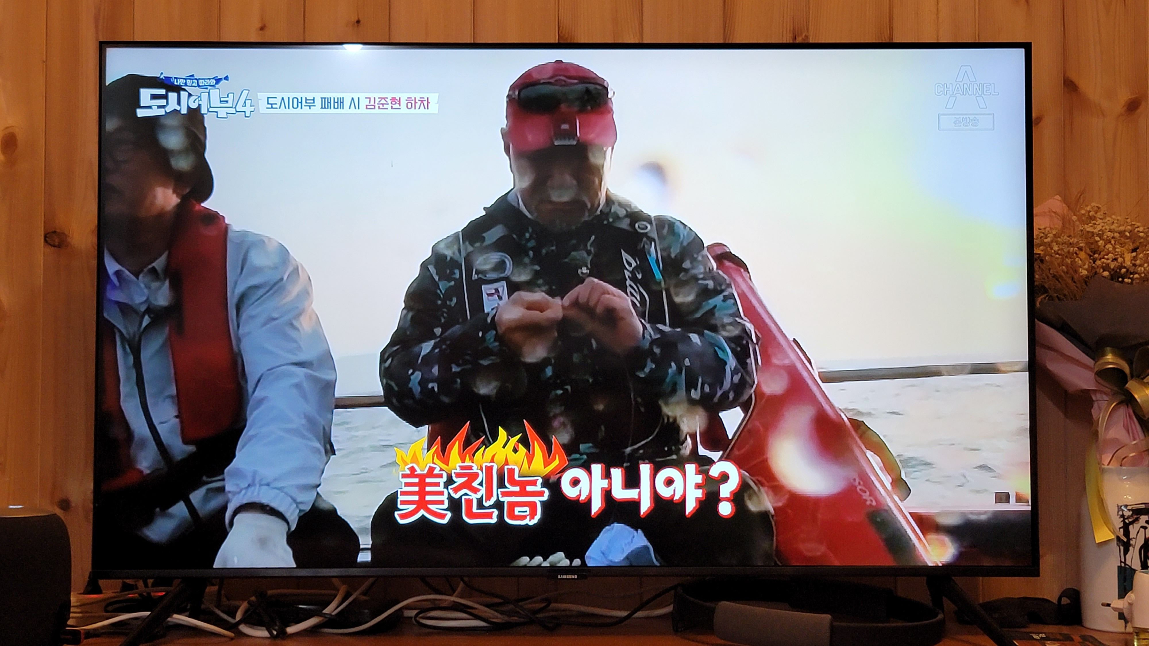 박 프로가 조기 두 마리를 연속으로 낚으면 하는 말 "준현아 미안하다" 그런데 얼굴에는 미소가 가득하다. 이래서 흥미가 있고 재미가 있다. 마음속 감정이 그대로 표출된다.