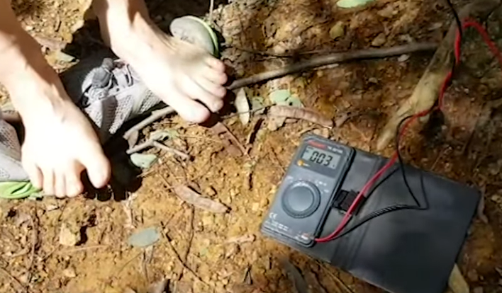 신발을 신었을 때와 맨발일 때의 몸의 전류량을 측정해보면 신발 위에서 양손으로 전극을 잡고 측정을 하면 2~5 정도 왔다 갔다 하던 전류가 땅을 딛는 순간 "0"이 되는 것들 볼 수 있다. 그만큼 맨발 흙길 걷기의 접지 효과가 큰 것이다.