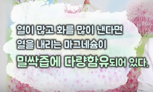 특히 새싹즙에는 열이 많고 화를 많이 내는 분들에게 열을 내리게 하는 마그네슘이 다량 함유되어 있기 때문에 좋다.