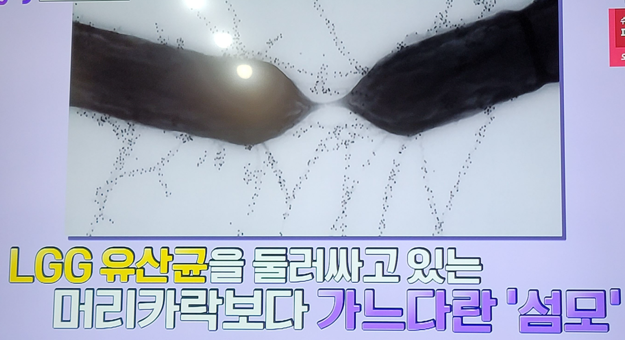 LGG 유산균이 장에 오래 남아 있을 수 있는 이유는 바로 긴 섬모 덕분이다. LGG 유산균의 머리카락보다 가는 많은 섬모들이 장벽에 달라붙어 생존이 가능한 것이다. 장에 정착이 쉽기 때문이라고 한다.